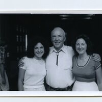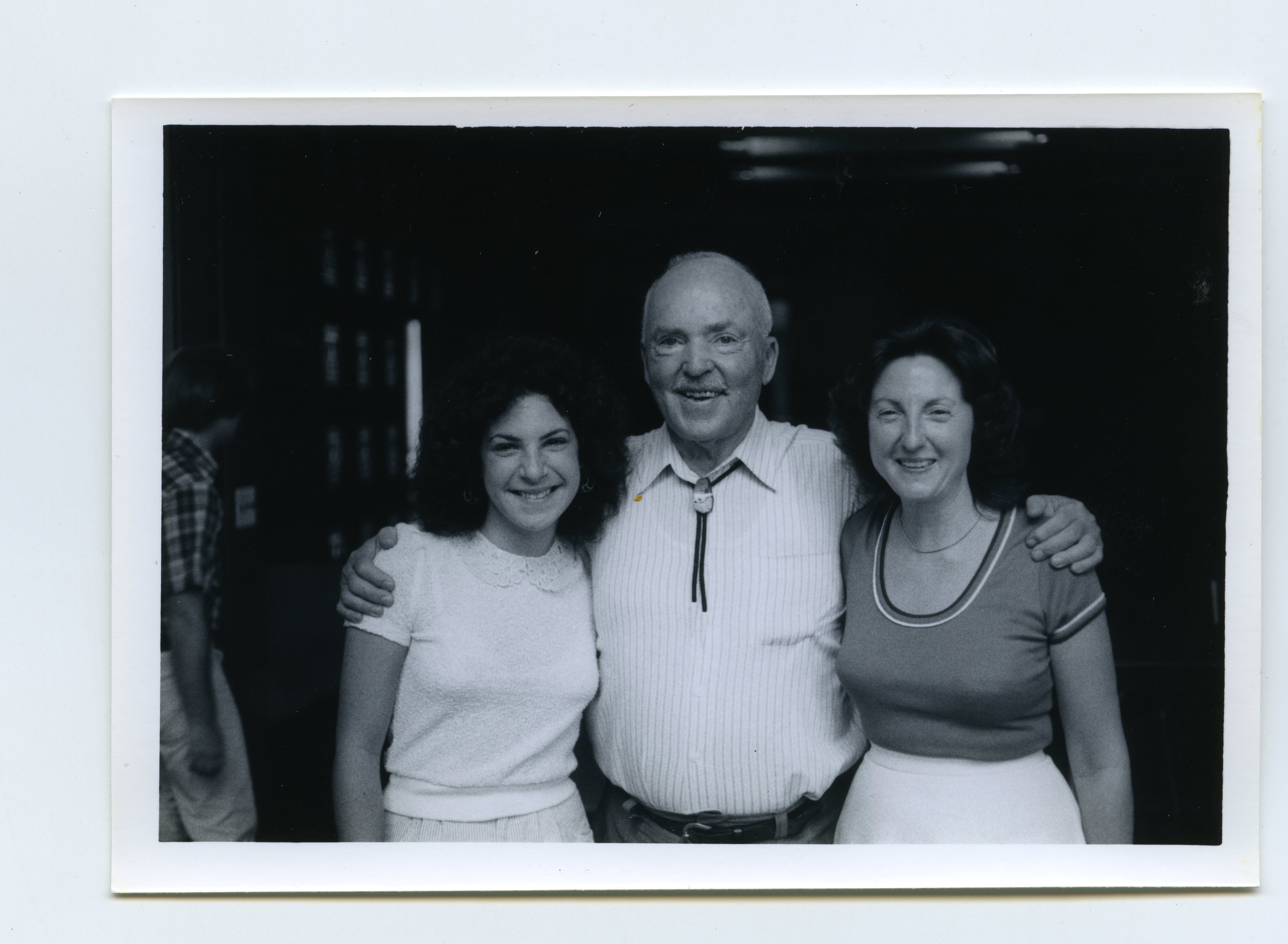 - eng The poet Richard Eberhart is standing in the center with two women, at a poetry event, date and location still to be determined.