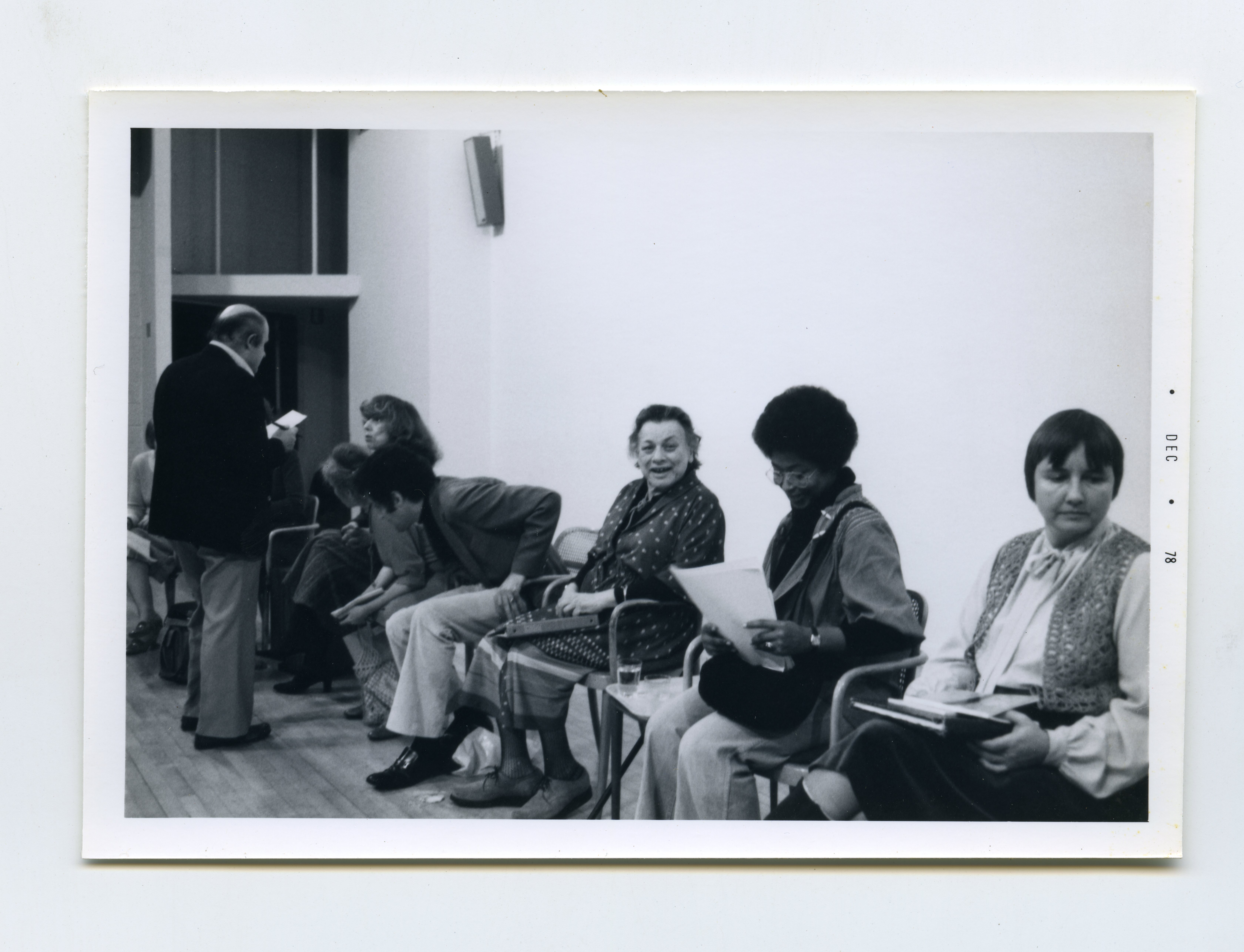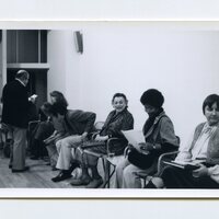 “A day in Honor of Muriel Rukeyser," December 9, 1978, Sarah Lawrence College. Muriel Rukeyser is present in the photograph, sitting with the writer Alice Walker to her right. Alice Walker was a former student of Muriel Rukeyser at Sarah Lawrence College.