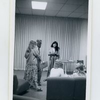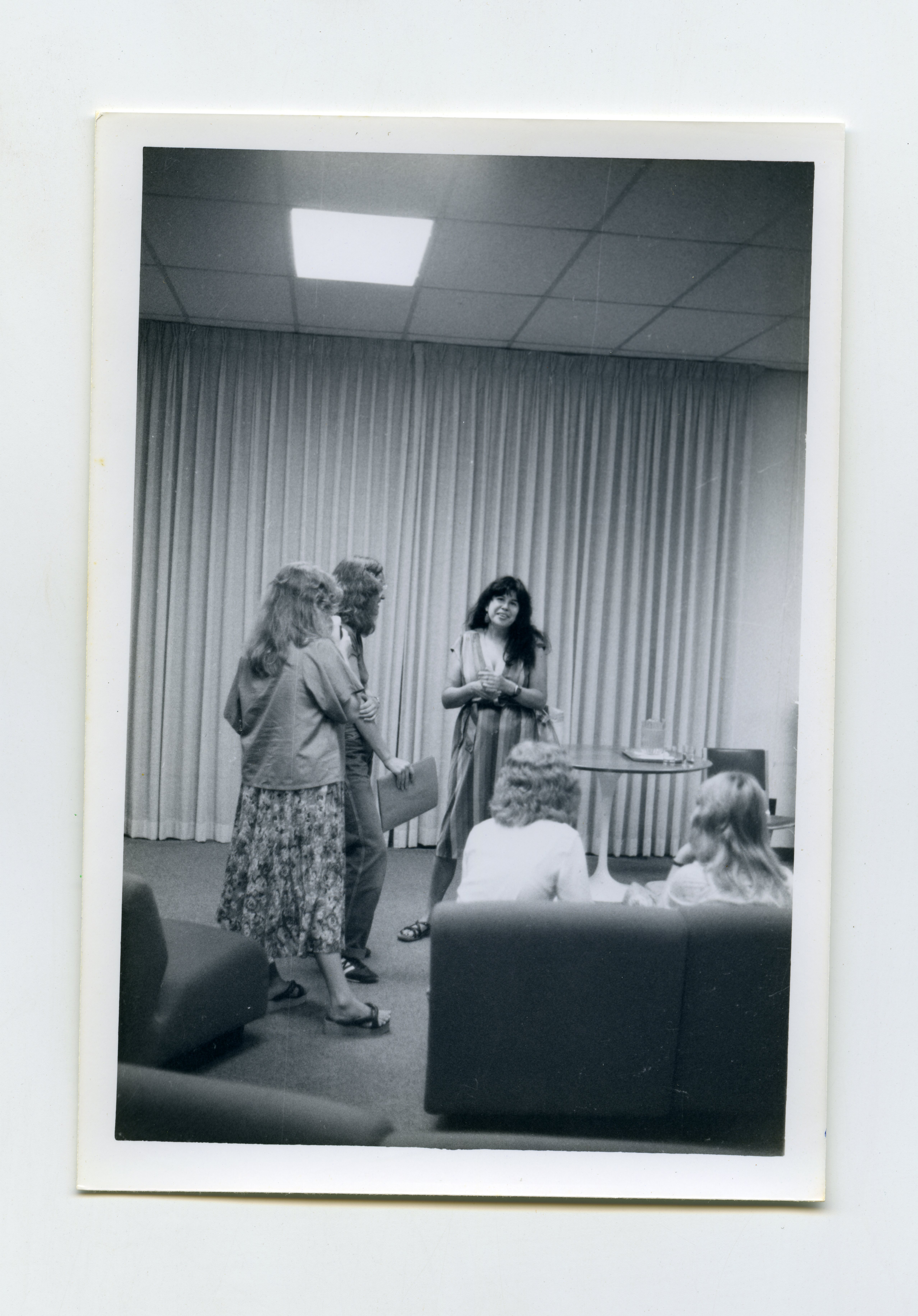 - eng A photograph of Marge Piercy speaking with two women, at a poetry event, date and location still to be determined.