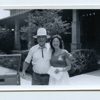 - eng Richard Eberhart, poet in a side embrace with an unidentified woman, at a poetry event, date and location still to be determined.