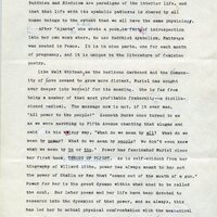 Original copy of Kenneth Rexroth’s introduction to Louise Kertesz’s book on Muriel Rukeyser, dated December 5th, 1978. There are underlines, marks, and additional notes on the introduction papers. Page 6 of 7.