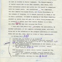 Original copy of Kenneth Rexroth’s introduction to Louise Kertesz’s book on Muriel Rukeyser, dated December 5th, 1978. There are underlines, marks, and additional notes on the introduction papers. Page 7 of 7.