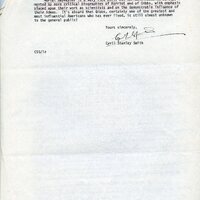Dated April 12th, 1976, a typed letter from MIT (Massachusetts Institute of Technology) Professor Cyril Stanley Smith to Louise Kertesz, in response to her inquiries about Muriel Rukeyser’s Willard Gibbs and The Traces of Thomas Hariot. On page three, he concludes his letter by calling Rukeyser "a very fine poet." And he adds that "her work needs to be supplemented by more critical biographies of Harriot and of Gibbs, with emphasis placed upon their work as scientists and on the demonstrable influence of their ideas. It's absurd that Gibbs, certainly one of the greatest and most influential Americans who has ever lived, is still almost unknown to the general public."