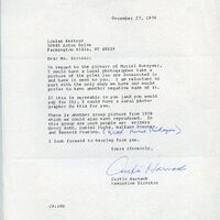 Dated December 27th, 1978. A typewritten letter from Curtis Harnack, Executive Director of Yaddo, to Louise Kertesz in regard to duplicating the two group photographs of Rukeyser at Yaddo.