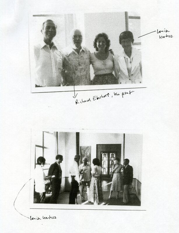 Louise Kertesz, far right, standing with poet Richard Eberhart and two other individuals, one man and one woman, at a poetry event, date and location still to be determined.