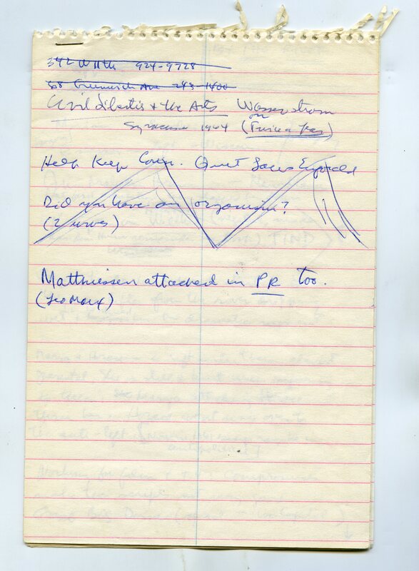 An original, typewritten letter, dated July 7th, 1975. The letter is from Muriel Rukeyser to Louise Kertesz. In the letter, Rukeyser thanks Louise for sending her essay on Thoreau. Rukeyser also provides an answer to Louise’s question [how to access a copy of M.L Rosenthal's 1949 thesis, "Chief Poets of the American Depression: Contributions of Kenneth Fearing, Horace Gregory, and Muriel Rukeyser to Contemporary American Poetry"] and suggests that she write to M.L. Rosenthal at N.Y.U. and ask to borrow a copy of his thesis. Rukeyser ends the letter by saying that she is enclosing a copy of the issue of American Poetry Review that Louise had requested.