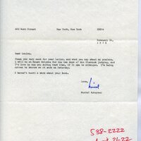 Original typewritten letter, dated February 24th. 1978. From Muriel Rukeyser to Louise Kertesz. Muriel thanks Louise for her letter and what she says about her preface [Rukeyser's preface to The Collected Poems of Muriel Rukeyser, published in 1978]. The letter says that Muriel will be at Mount Holyoke for the two days of the Glascock Poetry Contest, and that she would love to see Louise during that time. Muriel is being driven to Boston as the event ends on a Saturday. The letter ends with Muriel saying that she hasn’t heard a word about Louise’s book.